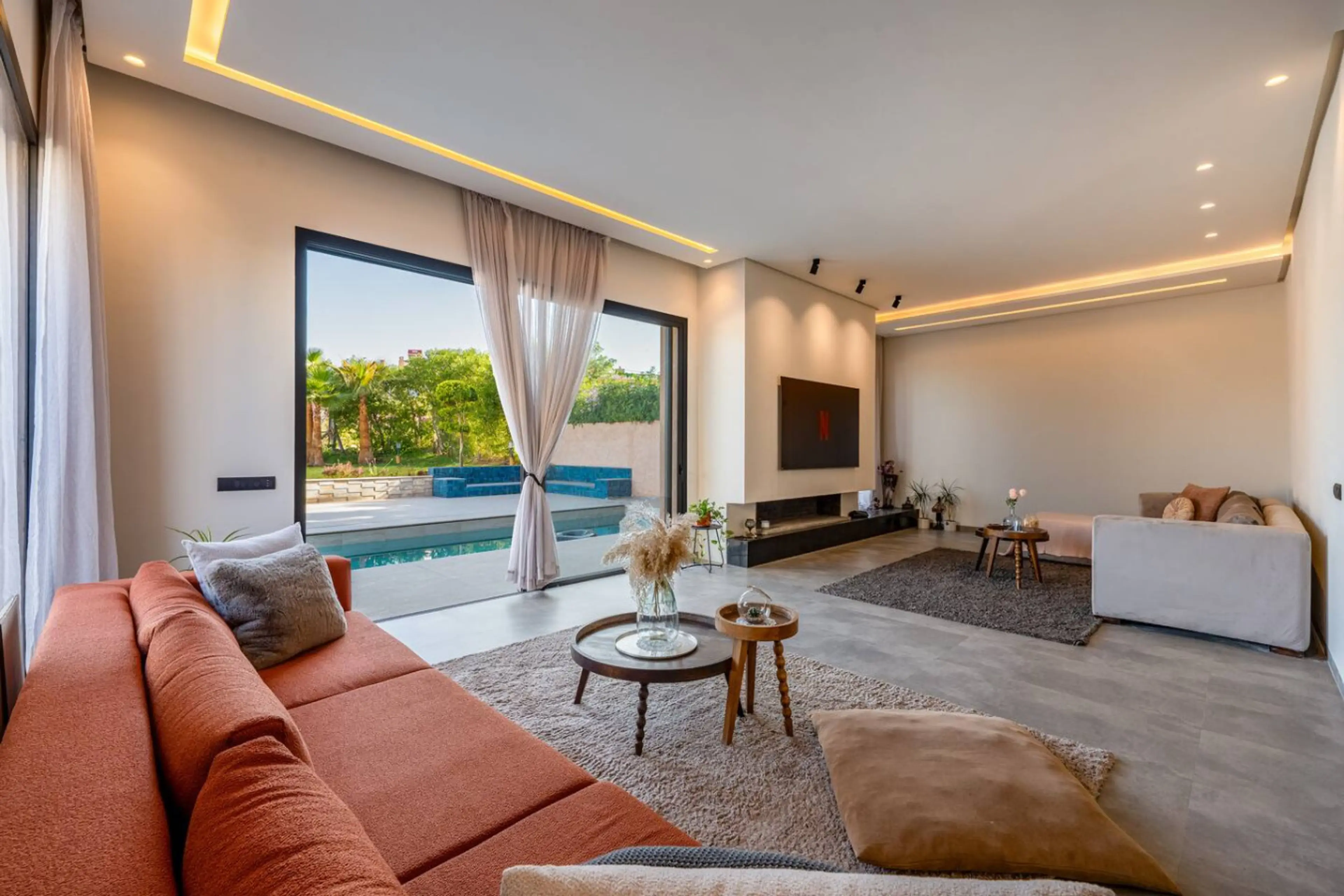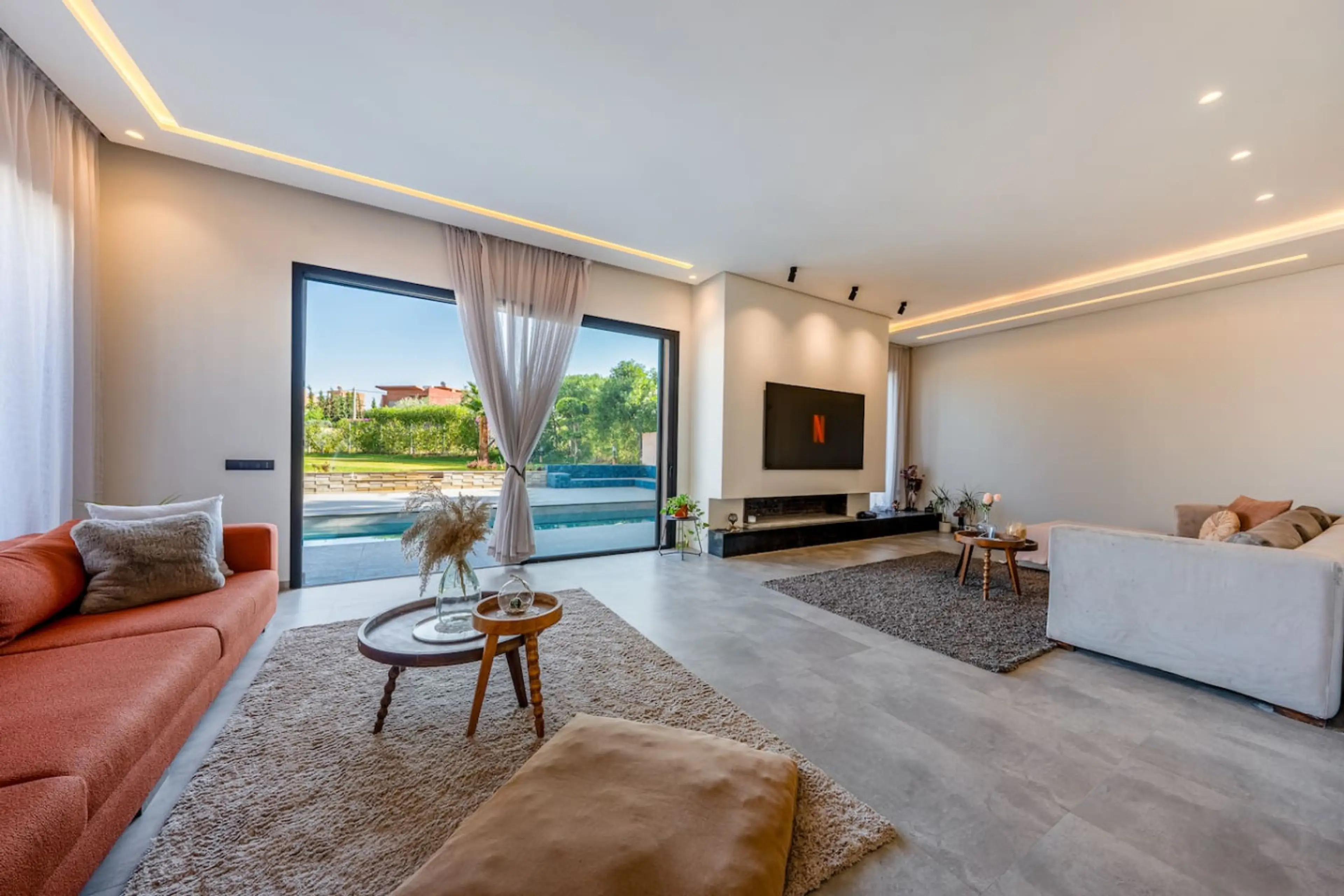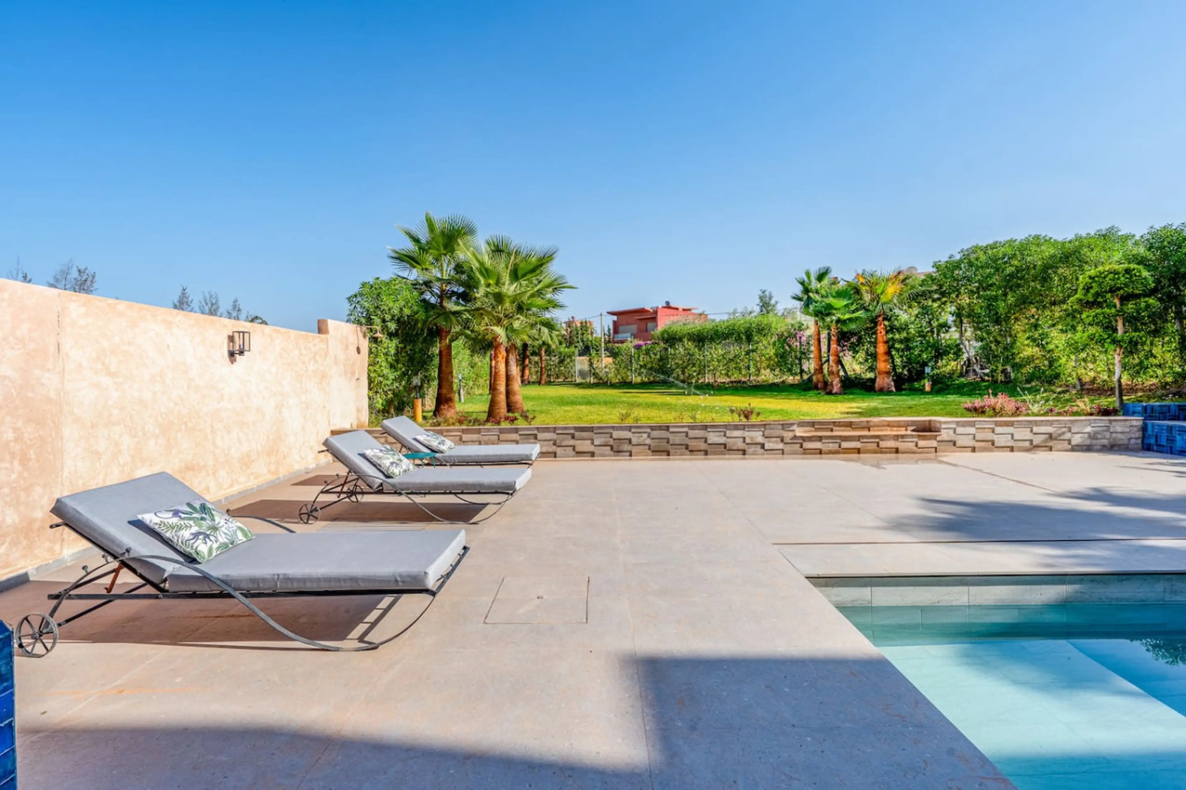 This modern 4-bedroom, 3-bathroom villa blends comfort, style, and a prime Marrakech location. Wake up to coffee in the spacious living room or in your private Garden , take a refreshing dip in the pool, and enjoy quiet moments in an elegant, serene setting. Perfect for families, couples, or friends...