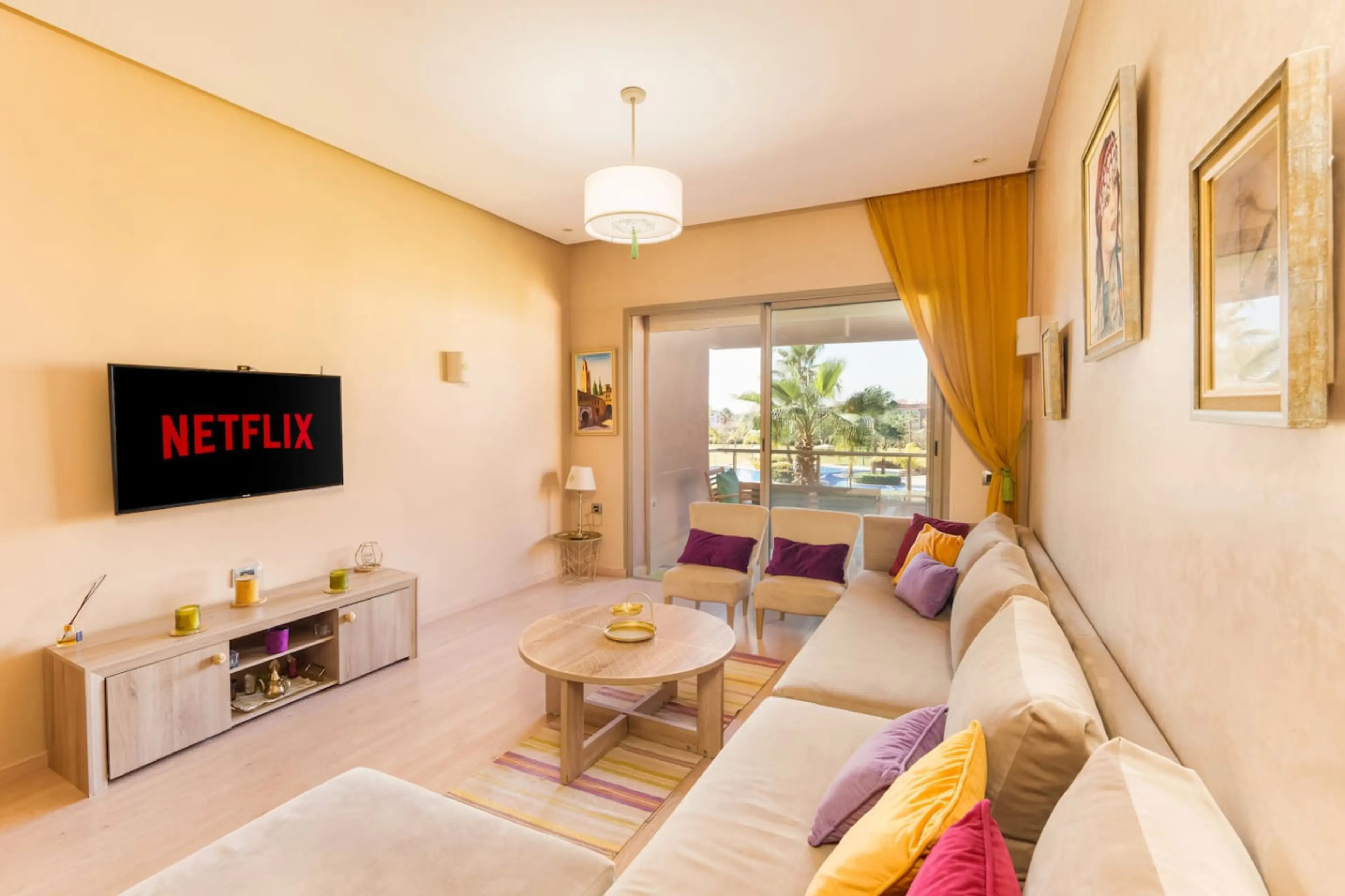 Your family will be close to everything when you stay at this centrally-located place. Nestled in the serene PRESTIGIA Golf, enjoy a peaceful retreat with golf, pool, and breathtaking Atlas Mountain panoramas. Savor fine dining at The Montgomerie restaurant just steps away. 8 min drive to vibrant Je...