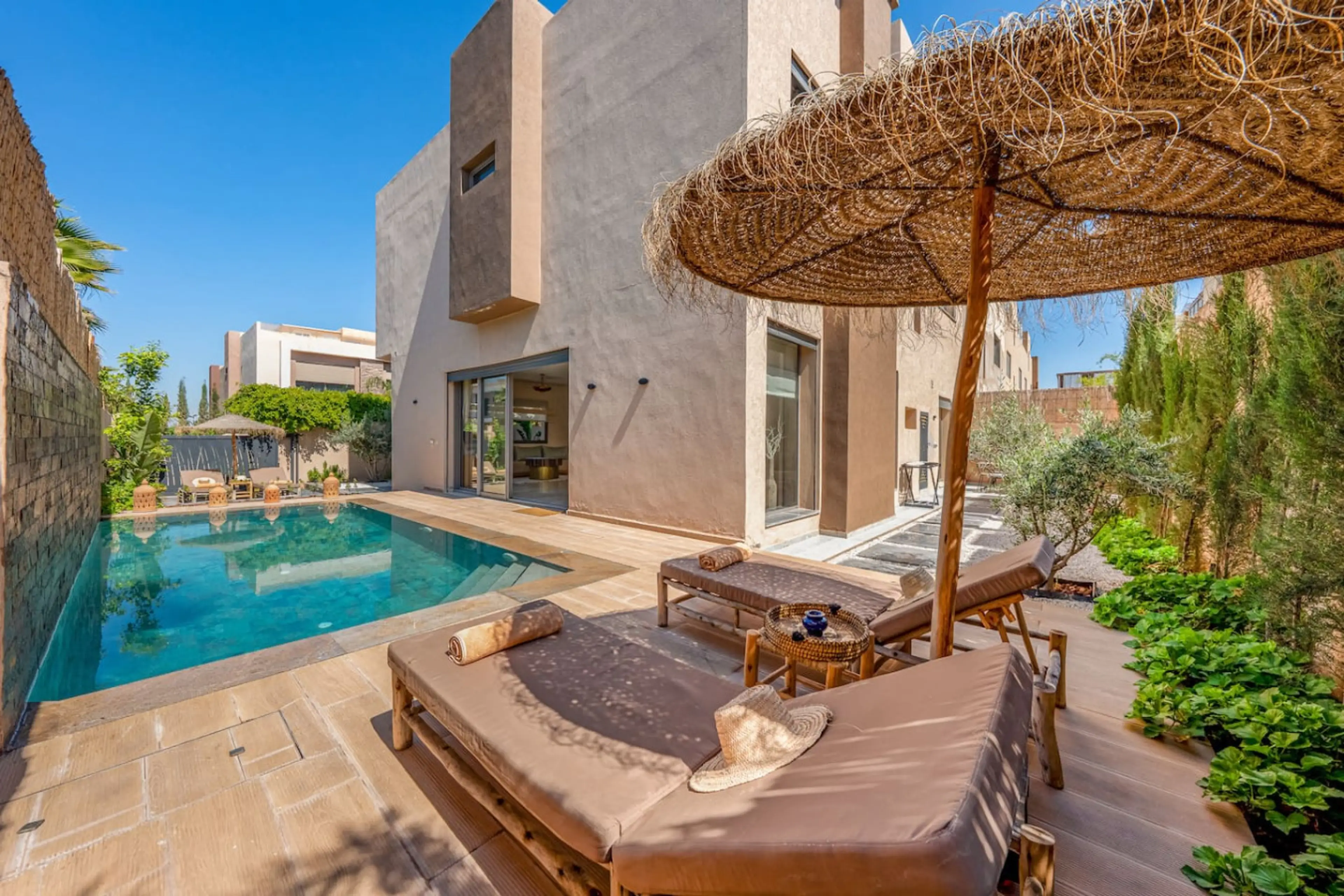 Hello and welcome, Experience the perfect blend of modern luxury and traditional Moroccan warmth. Our villa offers a peaceful retreat characterized by soft earthy tones, natural textures, and a private outdoor space that feels worlds away from the hustle and bustle